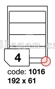 ART. RAYFILM 192 x 61mm bílé etikety jsou vyrobeny ze samolepicího bílého papíru, který má svrchní bílý bezdřevý papír gramáže 70g/m2 spojen permanentním akrylátovým lepidlem se spodním bílým podkladovým papírem o gramáži 55 g/m2. Označení: R0100.1016A Rozměr: 192 x 61