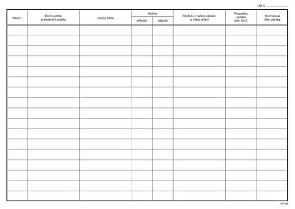Kniha evidence pohybu materiálů a vozidel - Optys 96 listů