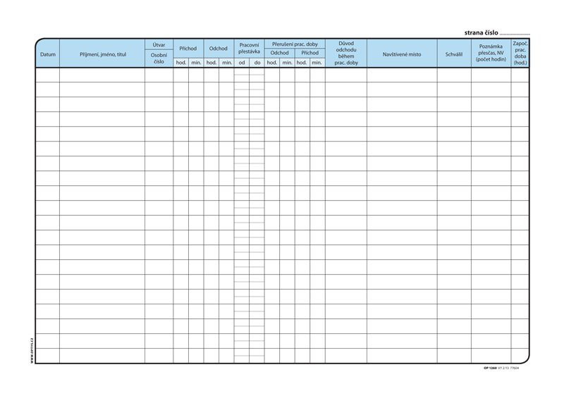 Popis Kniha příchodů a odchodů A4, 64 listů