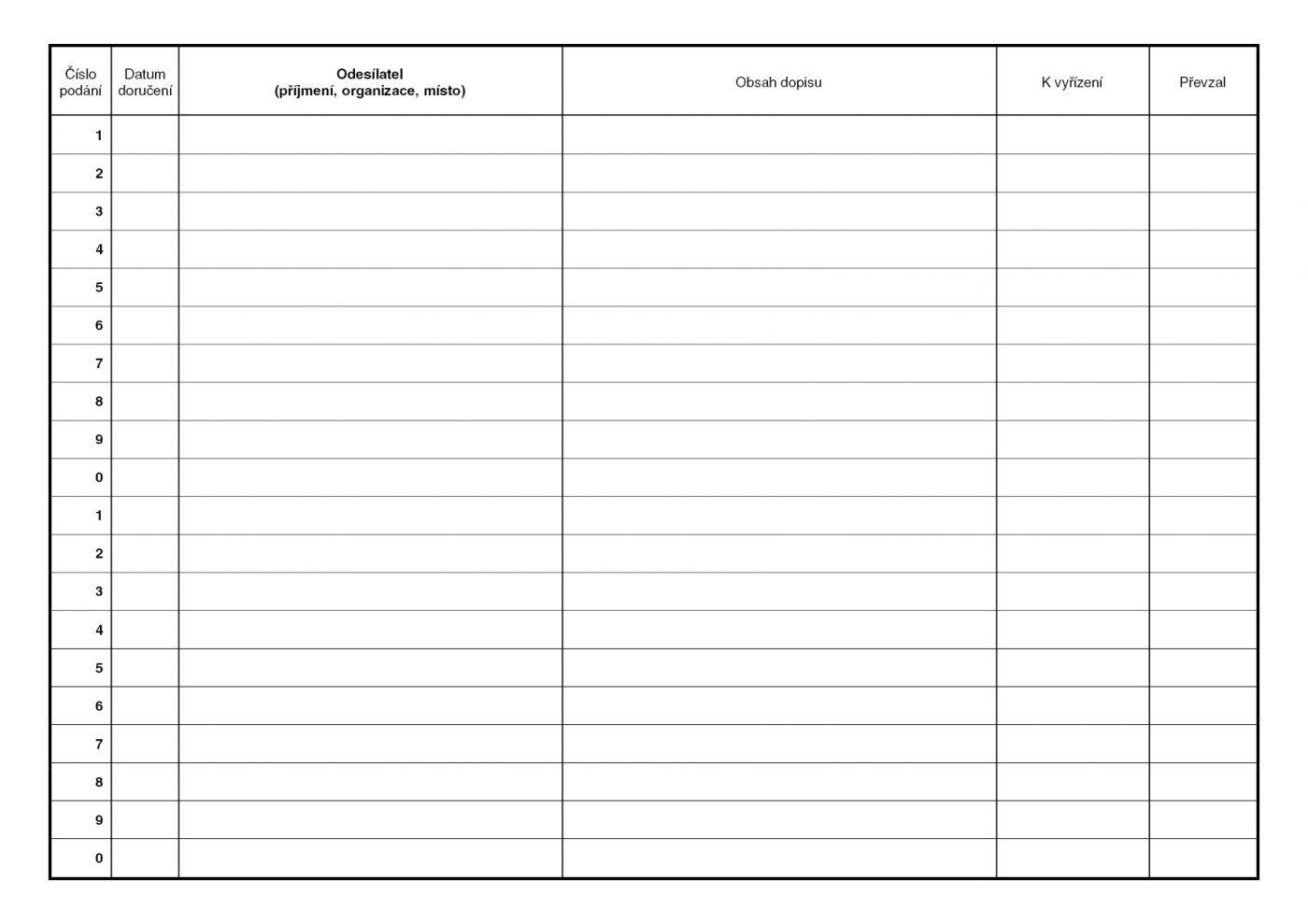 Popis Kniha přijaté pošty