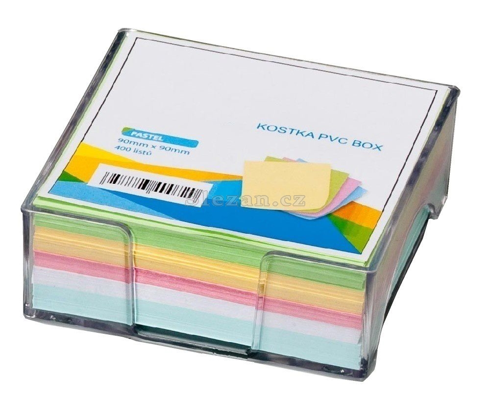 Plastová krabička s poznámkovým papírem. Rozměr 90 x 90 mm. 400 listů papíru v pastelových barvách.