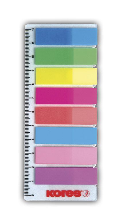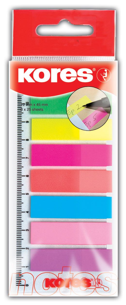 Popis Neonové záložky Index Strips Kores, 8x25 záložek na pravítku