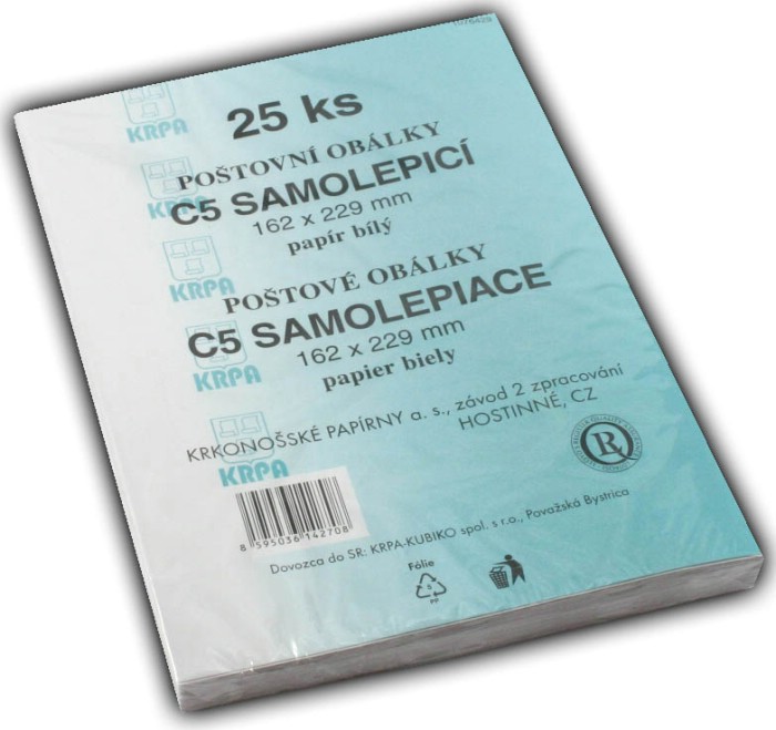 Rozměr 162x229 mm. Balení 25, 50, 100, 1000 ks.