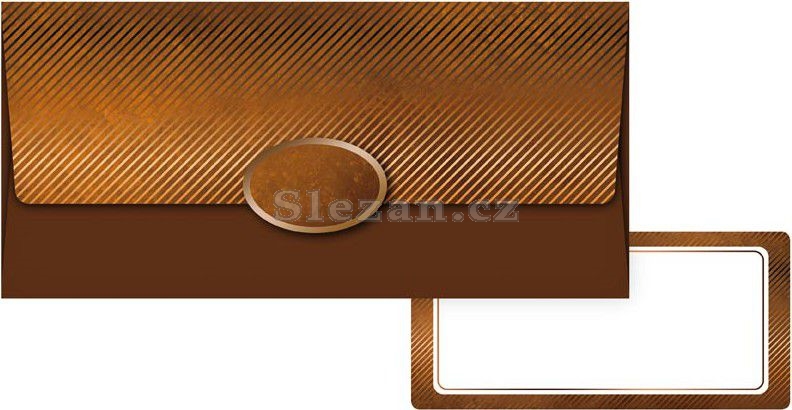 Obálka na peníze v elegantní hnědé s metalickým proužkovým vzorem.