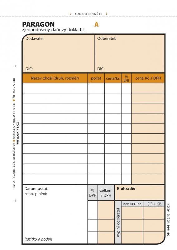 Popis Paragon A6, číslovaný, samopropisovací, 3 x 25 listů