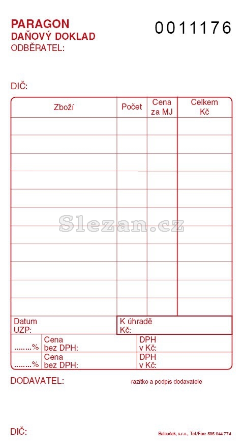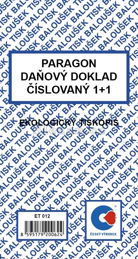 tiskopis je číslovaný 1+1, tištěný na recyklovaném hlazeném papíru červenou barvou, lepený blok v hlavě - pro snadné odtrhávání