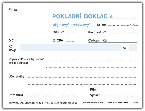 Pokladní doklad 93 - NCR - propis.
