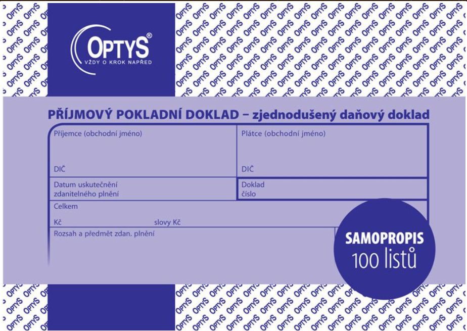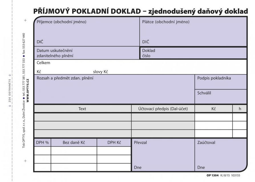 Popis Příjmový doklad A6, zjedn. d. d., NCR