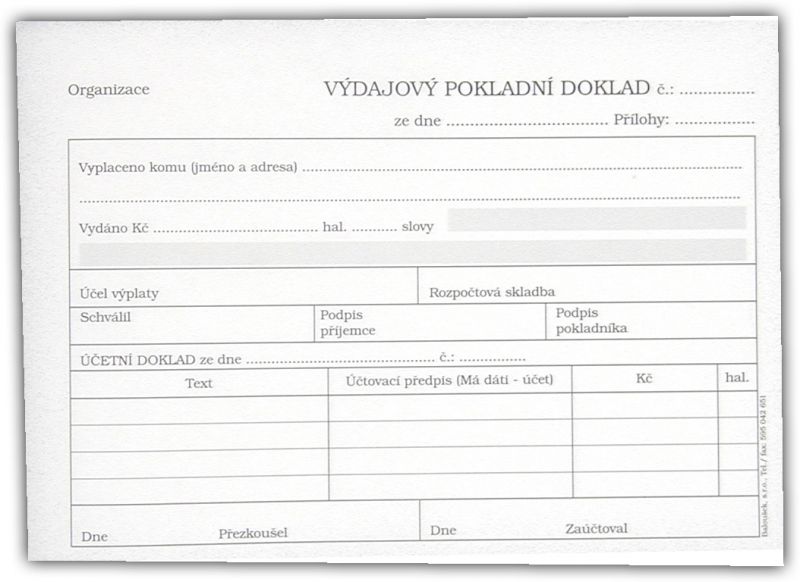 Výdajový pokladní doklad i pro podv. úč. ET050
