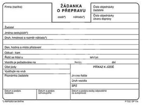 Žádanka o přepravu A6 176