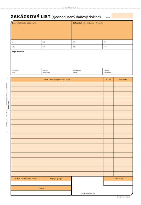 Zakázkový list A4 propisující Optys 84 1084