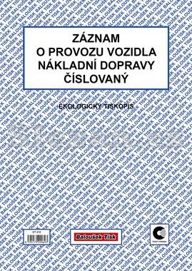 Nepropisující tiskopis. Číslovaný. Vyrobeno z recyklovaného papíru, vnitřní listy s černým obustranným tiskem. Lepený blok.