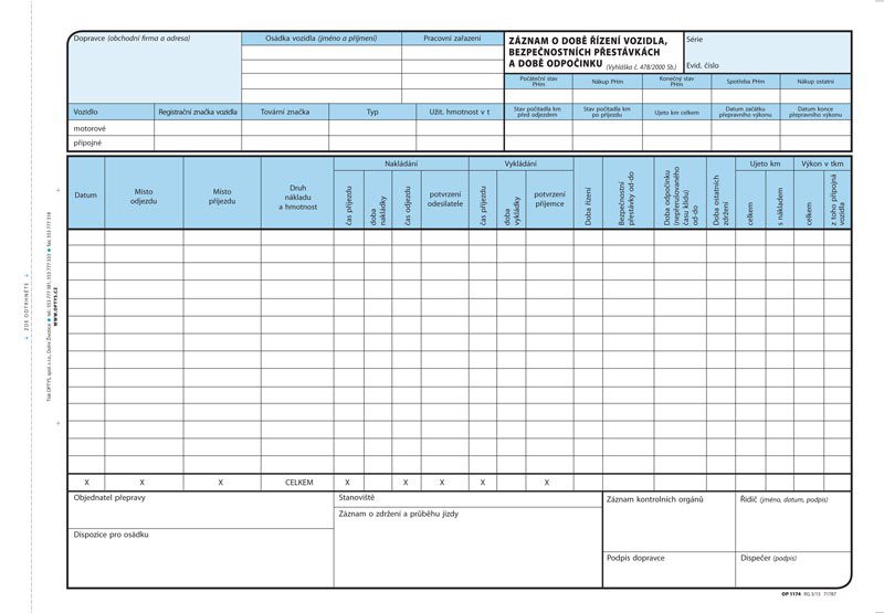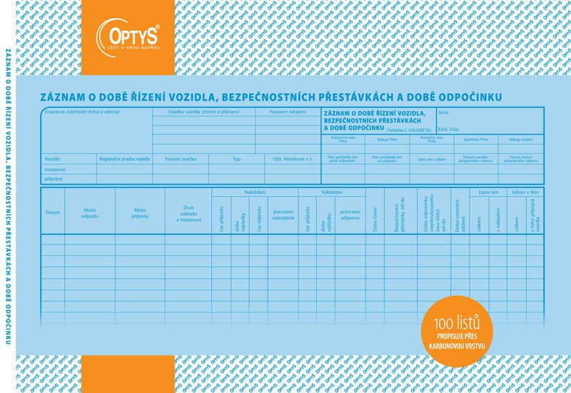 Záznam o době řízení vozidla a bezpeč. přestávkách Karbon A4