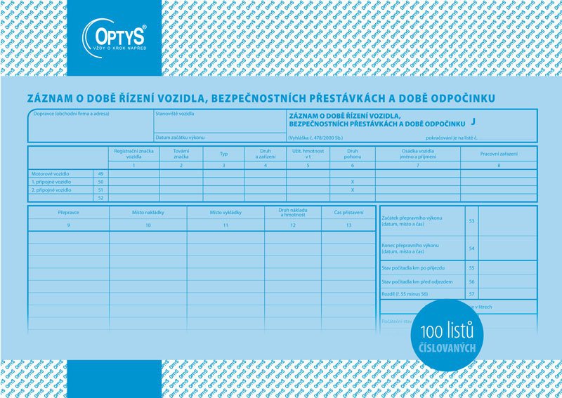 Záznam o době řízení vozidla a bezpečnostních přestávkách