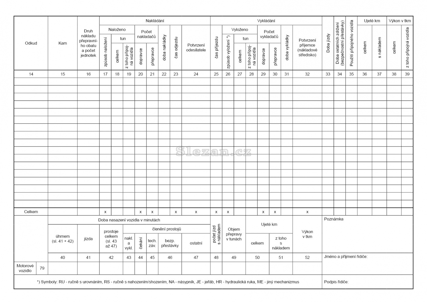 Popis Záznam o provozu vozidla nákladní dopravy