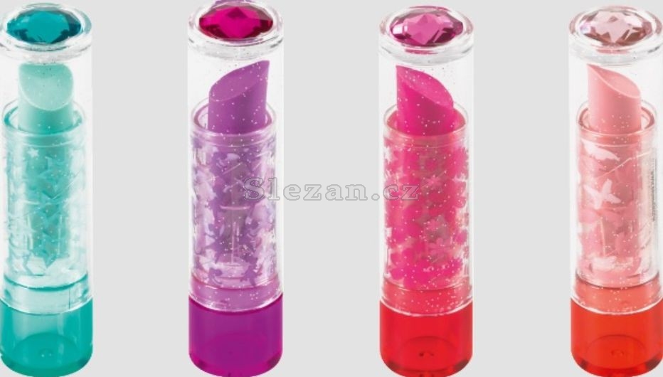 Guma ve tvaru rtěnky s glitry - velikost 7x2cm