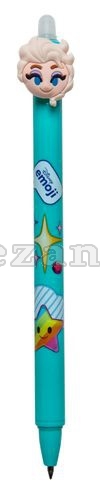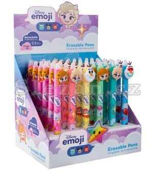 Oblíbená praktická pera se stiskací mechanikou pro školáky - psaní textu bez přepisování. Stačí vygumovat napsaný text a snadno napsat nový. Motiv Ledové království v barevném mixu.