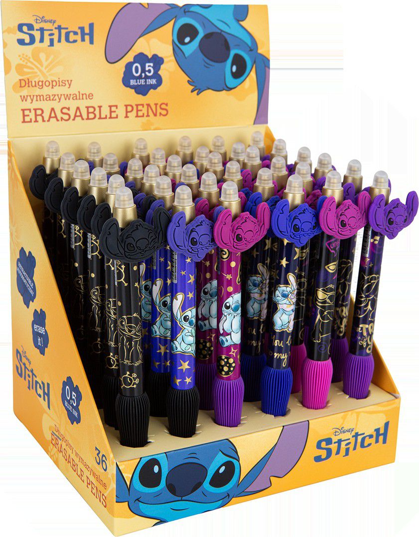 Kolekce gumovatelných per s barevným tělem a roztomilými motivy z kolekce Stitch Gold. Příjemný pogumovaný grip zajistí pohodlný úchop každému školákovi.