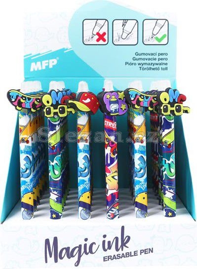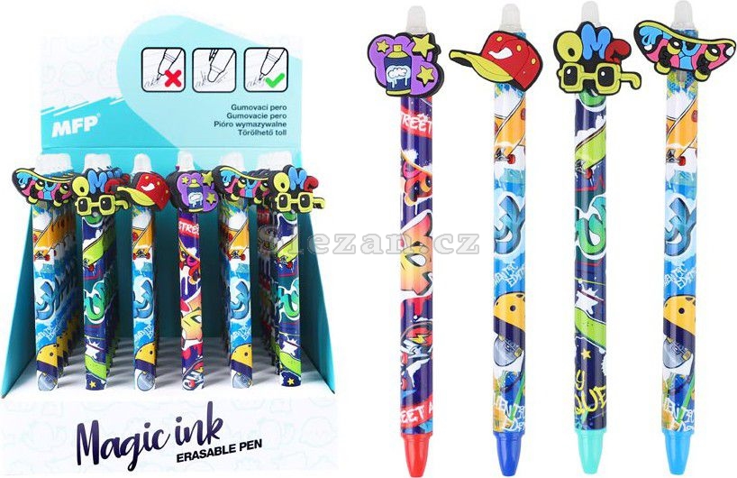 Gumovací kuličkové pero s motivy street art přináší hravý a moderní vzhled inspirovaný pouličním stylem.