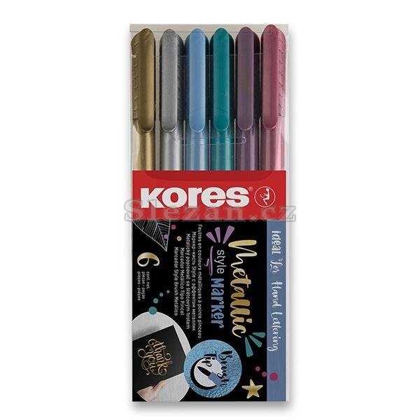 Sada 6 ks metalických popisovačů se štětcovým hrotem