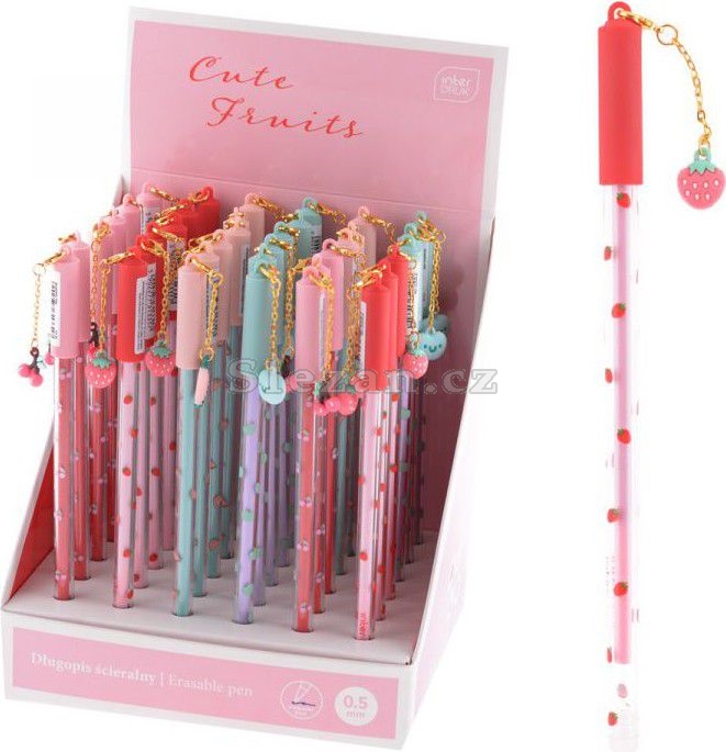 Propisky Interdruk Cute Fruits s unikátním inkoustem, který je možné smazat plastovým koncem pera a okamžitě znovu psát na vymazané místo.