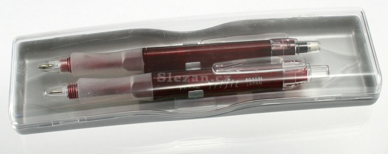 Moderní celotrojboké kuličkové pero, trojboký gumový úchop, slabá čára. Automatická tužka s kovovu špičkou. Dodává se v dárkové krabičce.
