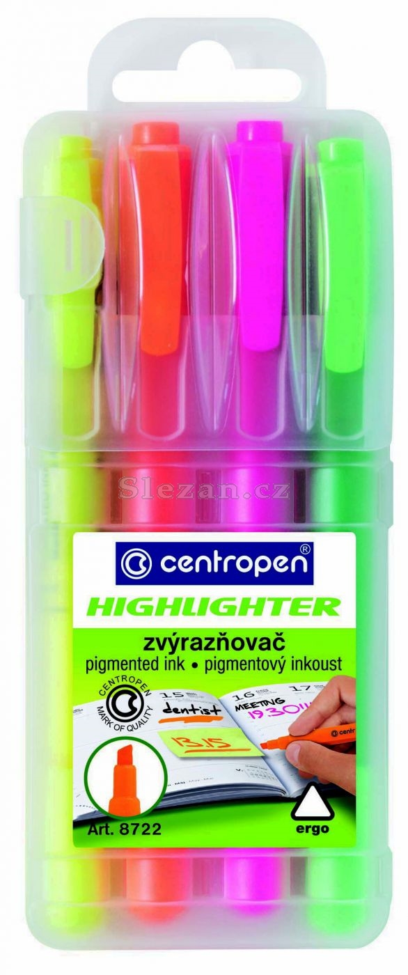 Popis Zvýrazňovač Centropen 8722 SE Highlighter, sada 4 ks