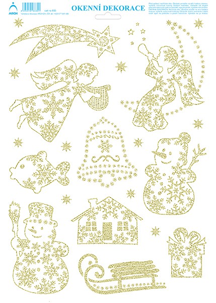 Andílek s lyrou - tisk zlatými glitry.Okenní dekorace s možností vícekrát použít.