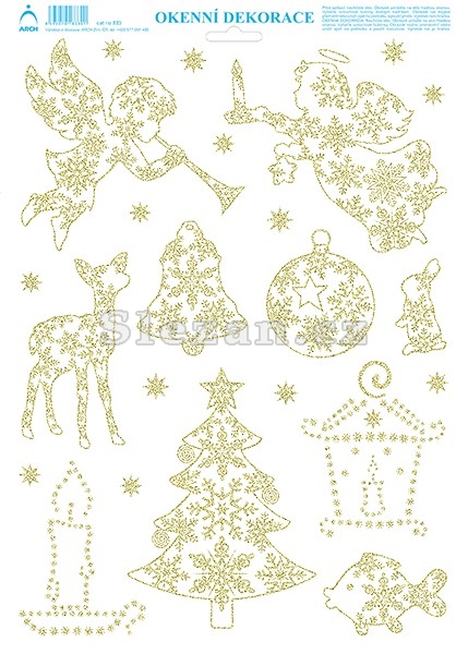 Andílek s trubkou - tisk zlatými glitry.Okenní dekorace s možností vícekrát použít.