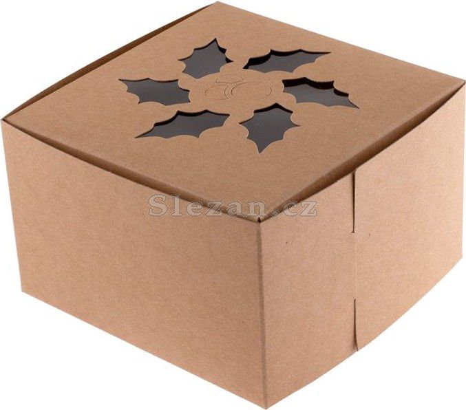 Dárková krabičká v eko provedení s průhledným okénkem v různých tvarech - jelen, vánoční hvězda, dáreček, vánoční stromeček, baňka, punčocha.