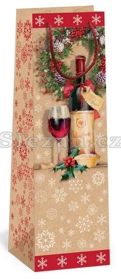 Vánoční papírová dárková taška NATUR s originálním designem na víno nebo šampaňské.