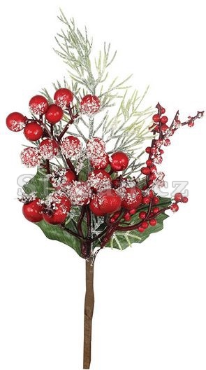 Větvička se šípky a červenými jeřabinami, ojíněná vánoční přízdoba