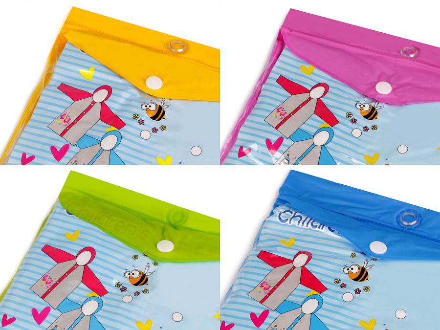 Kvalitní dětskou pláštěnku s veselým barevným obrázkem a kapsičkou si děti oblíbí na první pohled. Je vyrobená z velice pevného materiálu. Zapíná se na druky. Tělo pláštěnky je průsvitné, kapuce, rukávy, kapsa a léga se zapínáním je barevná. Kapuce má stahovací šňůrku. Pláštěnka je zabalená v ochranném pouzdru. Pláštěnka velikosti M měří: zadní délka cca 58 cm, délka rukávu (měřeno od kapuce po konec rukávu) 51 cm, obvod hrudi 84 cm. Je určená pro děti vysoké 115 - 125 cm. Pláštěnka velikosti L měří: zadní délka cca 62 cm, délka rukávu (měřeno od kapuce po konec rukávu) 59 cm, obvod hrudi 96 cm. Je určená pro děti vysoké 125 - 135 cm. Pláštěnka velikosti XL měří: zadní délka cca 68 cm, délka rukávu (měřeno od kapuce po konec rukávu) 61 cm, obvod hrudi 98 cm. Je určená pro děti vysoké 135 - 145 cm.