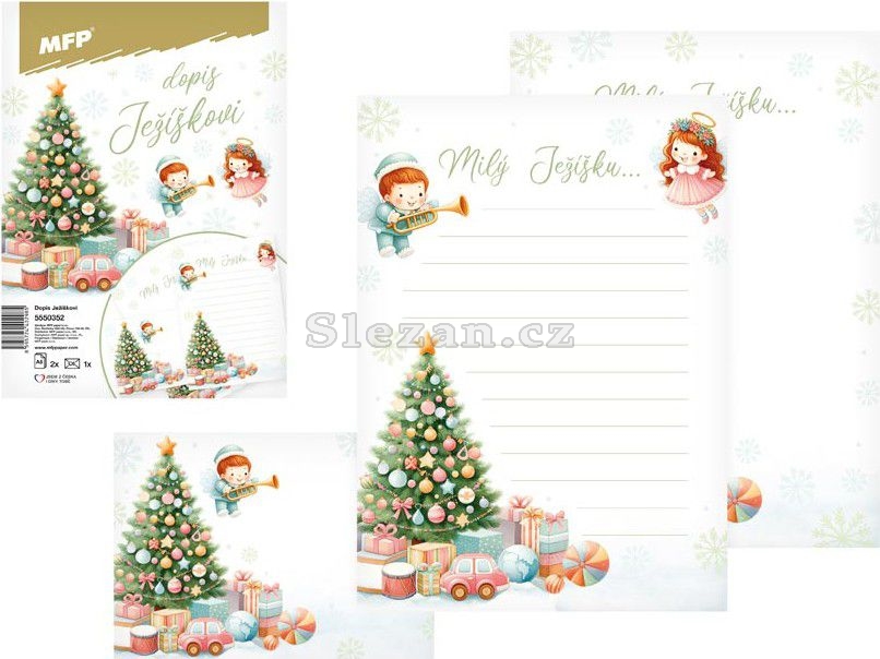 Dopis Ježíškovi. Napsat dopis Ježíškovi je vánoční tradice. Tento krásně ilustrovaný dopisní papír je ideální pro děti i dospělé, kteří chtějí Ježíškovi sdělit svá přání. Společně se svými dětmi napište dopis Ježíškovi a přiložte krásný obrázek. Udělejte z psaní dopisu Ježíškovi nezapomenutelný zážitek a nechte vánoční kouzlo vstoupit do vašeho domova. Dopis můžete jednoduše položit za okno nebo jej poslat poštou přímo Ježíškovi. BALENÍ OBSAHUJE: - 2 listy papíru A4 - potištěnou obálku Uvedená cena je za 1 balení.