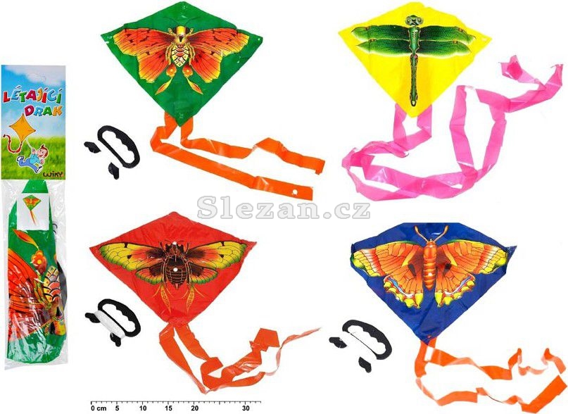 Dětský drak - motýl, můra, vážka - Kdy jindy pouštět draky než na podzim! Že ještě žádného nemáte? Pořiďte si u nás z pestré škály létajících draků. Parádní létající drak se bude na obloze určitě moc dobře vyjímat. Tak hurá na drakiádu! Pojďte se společně vyřádit při pouštění draků, třeba se zajímavými pestrými motivy. BARVA: zelená, žlutá, červená, modrá UPOZORNĚNÍ: Používejte pod dozorem dospělé osoby, obal odstraňte z dosahu dětí. Nepoužívejte v blízkosti nadzemního el. vedení, v bouřce, za silného větru apod. Je-li součástí provázek nemotejte jej kolem krku nebo jiných částí těla. Hrozí nebezpečí udušení a vdechnutí malých částic. Uvedená cena je za 1 ks. Drak je balený v sáčku se závěsem.