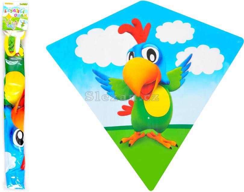 Dětský drak - VIKTOR, papoušek. Kdy jindy pouštět draky než na podzim! Že ještě žádného nemáte? Pořiďte si u nás z pestré škály létajících draků. Parádní létající drak se bude na obloze určitě moc dobře vyjímat. Tak hurá na drakiádu! Pojďte se společně vyřádit při pouštění draků, třeba se zajímavými pestrými motivy.