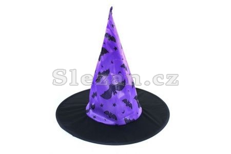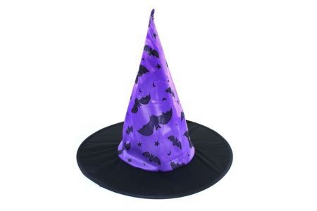 Úžasný čarodějnický klobouk s potiskem ve tvaru netopýrů. Ideální na halloweenský večírek nebo karneval!