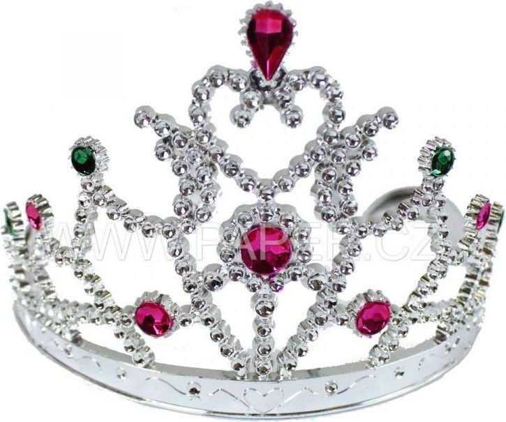 Korunka je vyzdobena zelenými a růžovými kamínky.