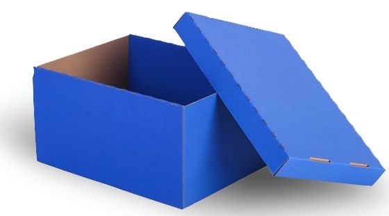 Krabice dno + víko z třívrstvé vlnité lepenky v modrém provedení.