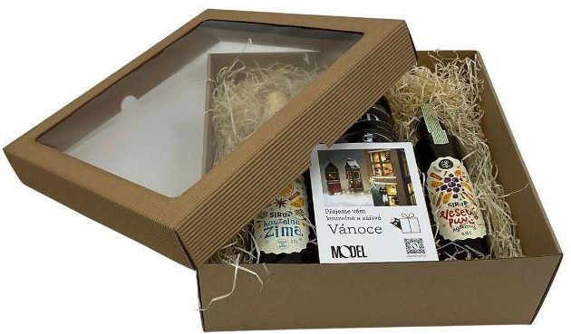 - Zákazníky využíváno jako krabice pro dárkový koš - mix výrobků doplněný dřevitou vlnou, celofánem nebo hedvábným papírem působí v této krabici luxusním dojmem.