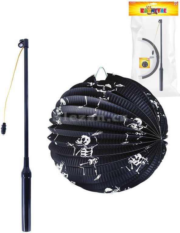 Papírový černý lampion s bílým motivem kostry a k němu svítící hůlka! Kulatý lampion kostlivec je vyroben z papíru a ve spodní části se nachází úchyt pro svíčku. Tento super kousek ti zaručí parádní atmosféru na tvém halloweenském večírku nebo lampionovém průvodu! Přepnutím spínače na rukojeti hůlka svítí. Hračka na baterie, se světlem. Baleno v sáčku.