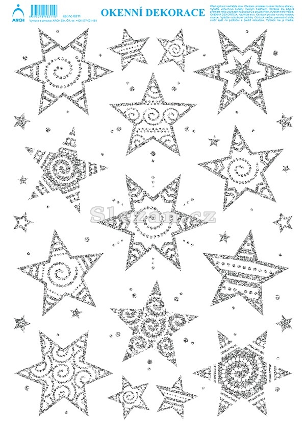 Popis Okenní folie Hvězdičky stříbrné s glitry 8311-SG