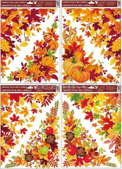 Popis Okenní fólie podzimní listí, rohová, 38x30cm