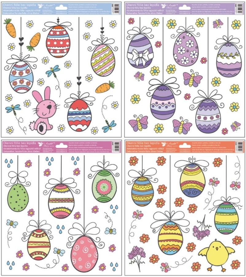 - Motiv velikonočních vajíček s jemnými glitry rozzáří okna, vitríny nebo zrcadla a dodá interiéru sváteční jarní atmosféru.