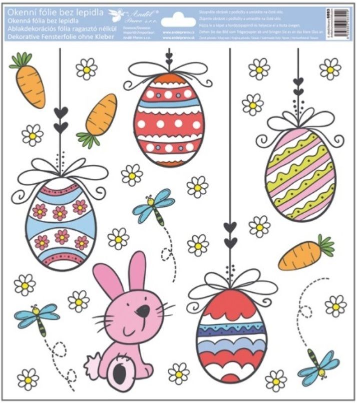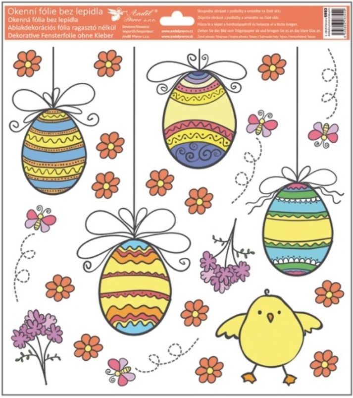 Tato okenní fólie s glitry a motivem velikonočních vajíček o rozměru 30 × 33,5 cm rozjasní vaše okna třpytivou jarní výzdobou.