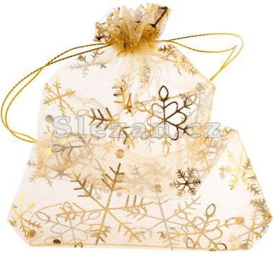 Vánoční dárkový sáček z organzy se zlatým potiskem vloček.