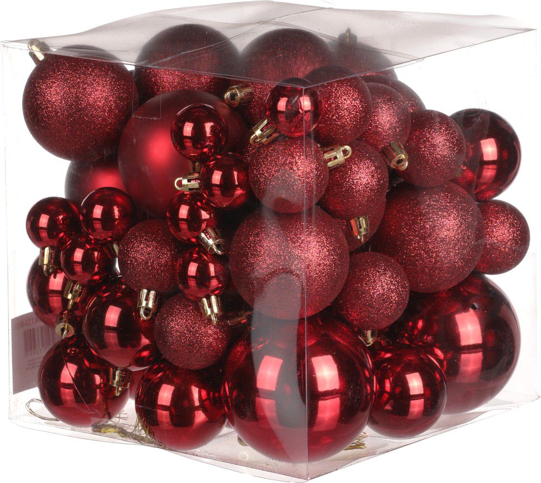 Popis Ozdoby plastové, barva červená, mix velikostí, cena za 1 balení (62 ks)