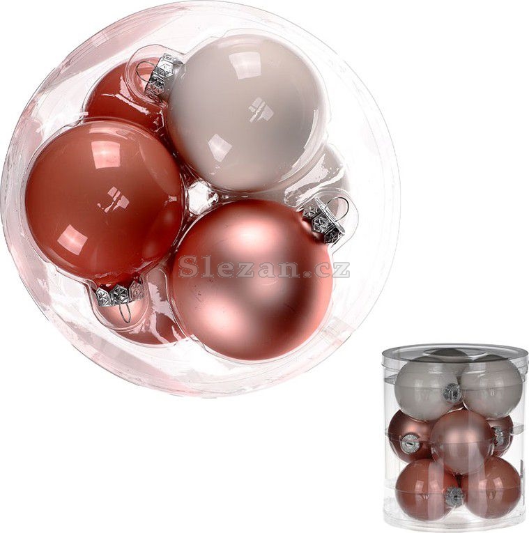 Ozdoby skleněné, meruňkovo-bílé barvy, pr. 7cm, cena za 1 balení(9ks)