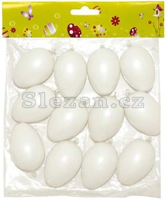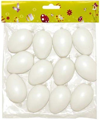 Balení obsahuje: 12 ks bílých plastových vajíček. Vajíčka mají šňůrku na pověšení.