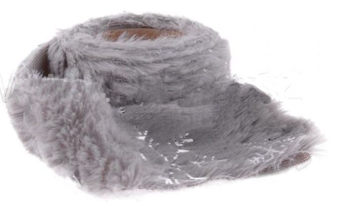 Plyšová stuha 4cm/2m šedá, potisk vloček